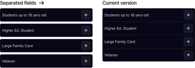 Now discount section, shows more visible cards, that consist of labels that actually tell user what potential discount they can get.
