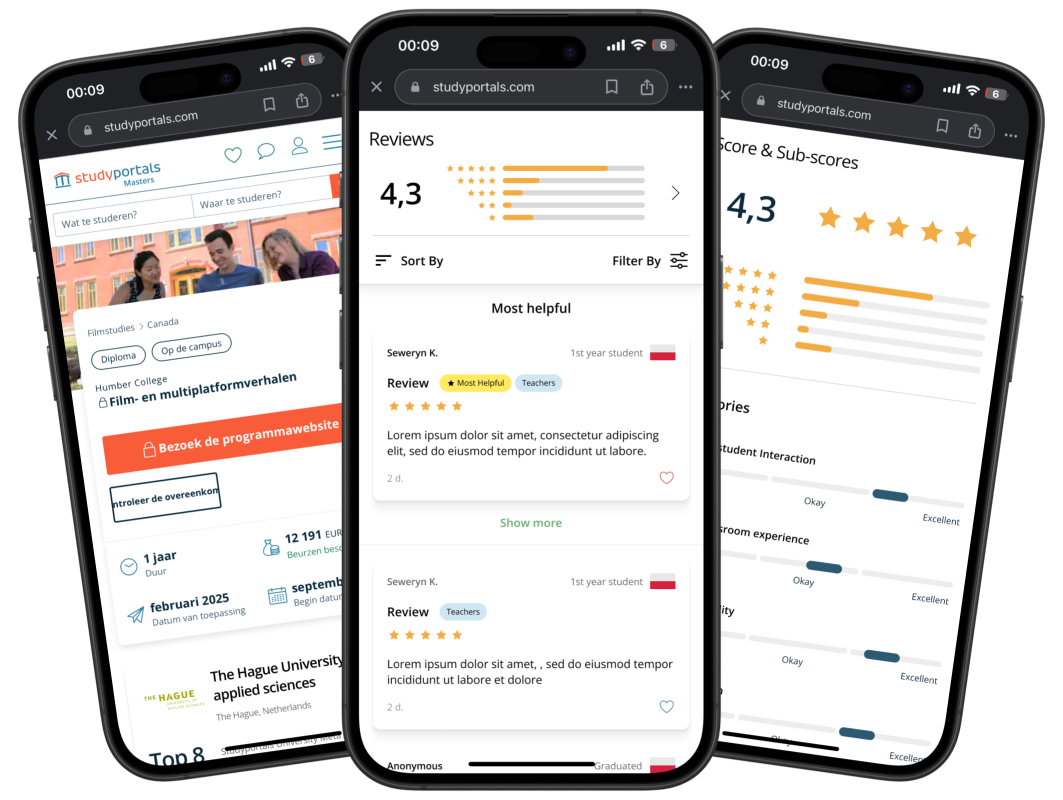 Universities and their staff often use StudyPortals reviews to get feedback on their courses and campus life and potentially use this to identify opportunities to improve their programs.